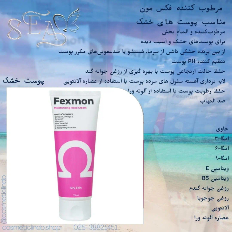 ژل ابرسان فکس مون آبرسان قوی جذب فوقالعاده فرموله شده با ژل آلوئهورا تأمین رطوبت روزانه پوست تنظیم چربی پوست با بهره گیری از پروتئین ابریشم در ترکیبات حاوی پروتئین کلاژن جهت افزایش الاستیسیته، انعطاف پذیری و همچنین آبرسانی پوست محافظ ابریشمی پوست مرطوب کننده دست فکس مون مرطوبکننده و التیام بخش برای پوستهای خشک و آسیب دیده از بین برنده خشکی ناشی از سرما، شستشو یا ضدعفونیهای مکرر پوست تنظیم کننده PH پوست حفظ حالت ارتجاعی پوست با بهره گیری از روغن جوانه گندم ضد التهاب به دلیل وجود روغن جوجوبا در ترکیبات لایه برداری آهسته سلول های مرده پوست با استفاده از عصاره آلانتوین حفظ رطوبت پوست با استفاده از آلوئه ورا آبرسانی عمیق پوست با ماندگاری بالا